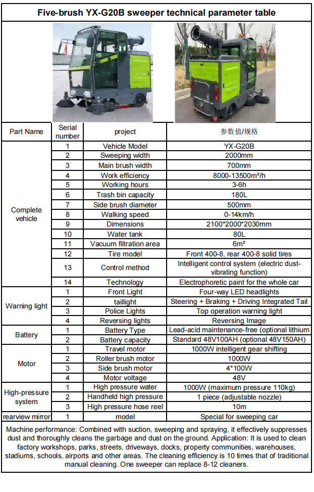 A tisztítási hatékonyság tízszerese a hagyományos manuális tisztításhoz. Az egyik seprőgép helyettesítheti a 8-12 tisztítót.