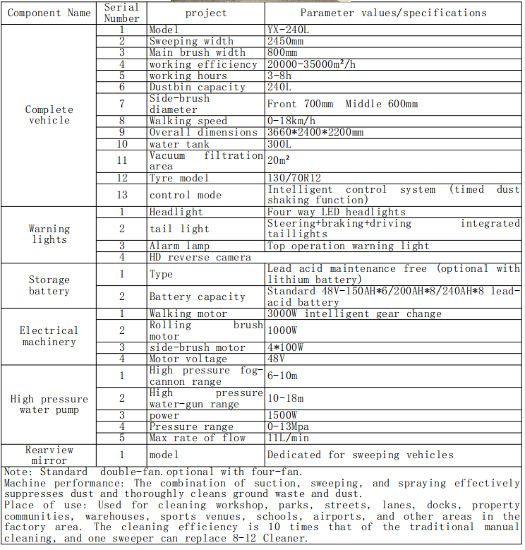 Használati hely: Tisztító műhelyek, parkok, utcák, sávok, dokkok, ingatlanközösségek, raktárak, sporthelyek, iskolák, repülőterek és egyéb területek tisztításához használják a tényleges területen. A tisztítási hatékonyság tízszeresére a hagyományos kézikönyv, és az egyik seprőgép helyettesítheti a 8-12 tisztítószert.