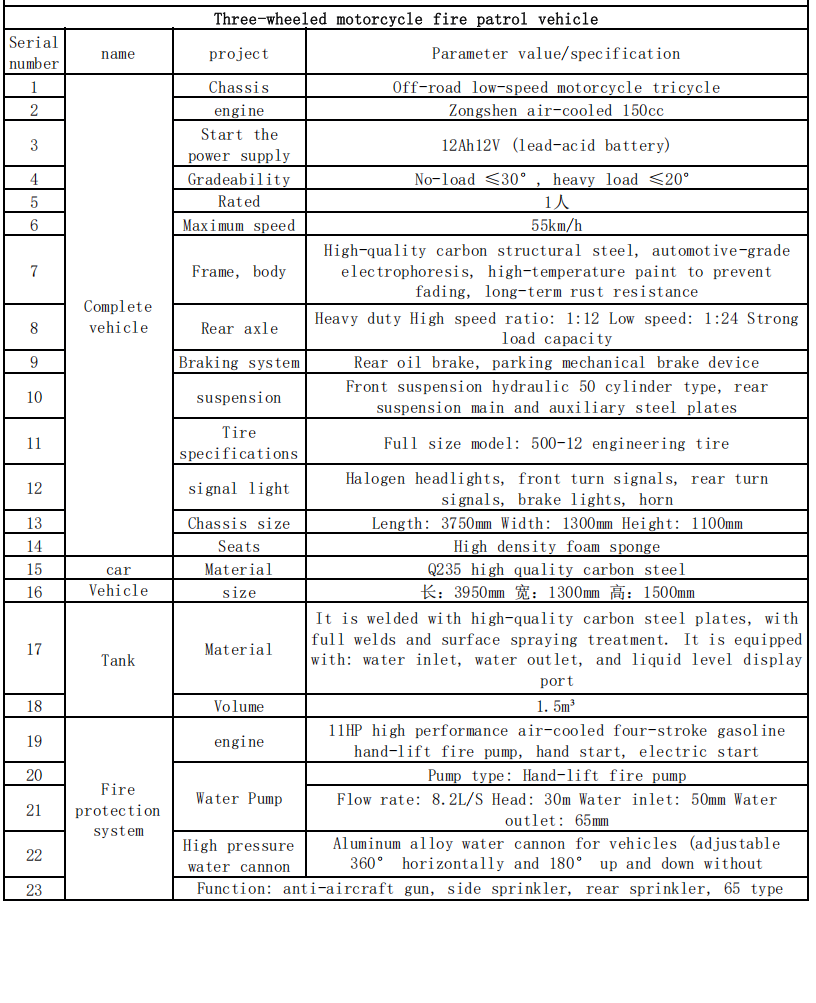 Tekintettel a vidéki utak alacsony minőségére és a tűzoltóállomásoktól való távolsági távolságra, a háromkerekű tűz motorkerékpárok használhatók a település szakmai tűzoltóságának fő berendezéseiént. Több készletet tudnak szállítani, mint a kétkerekű járművek, és jobban alkalmazkodnak az összetett útviszonyokhoz, mint a négykerekű tűzoltókocsik, felismerve a "közeli rendõrség és a gyors ártalmatlanítást".